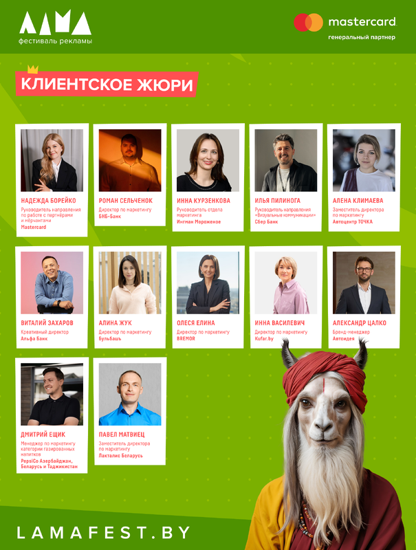Фестиваль рекламы ЛАМА – одно из ярчайших событий индустрии коммуникаций Беларуси, место, где встречаются идеи, реализованные брендами и агентствами как в Беларуси, так и далеко за ее пределами, – объявляет состав жюри!