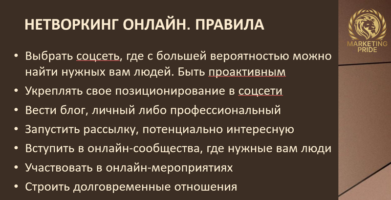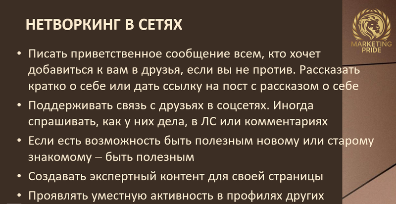 Но настоящий нетворкинг строится не на использовании, а на обмене: знаниями, опытом, ресурсами, возможностями. Именно тогда он становится частью устойчивой коммуникации. Нетворкинг — это технология: налаживаете отношения, а не собираете визитки.