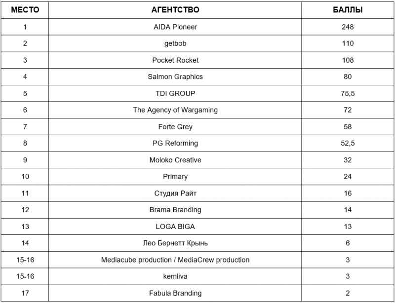 РЕЙТИНГ КРЕАТИВНОСТИ АГЕНТСТВ БЕЛАРУСИ АКМА 2021